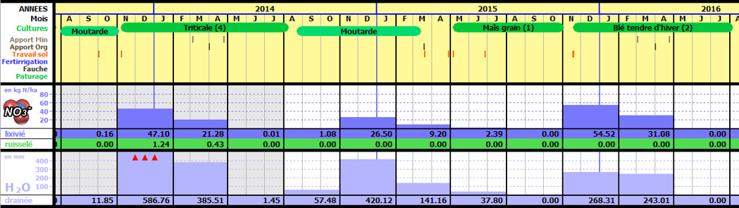 BR1 - Figure 3 - N lixivié et eau drainée succession de cultures 2010-2014